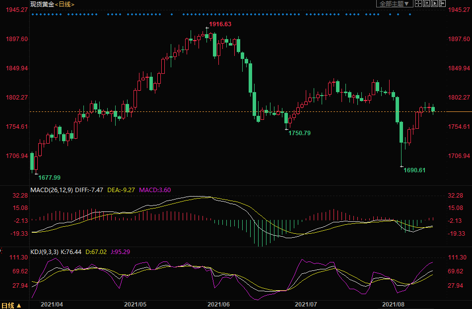 总的来看,金价涨势可能暂告一段落,因美元指数仍然强势上涨,下方需要关注1750附近的支撑。
