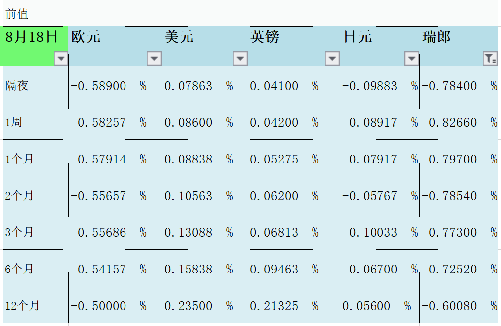 8月18日LIBOR前值: