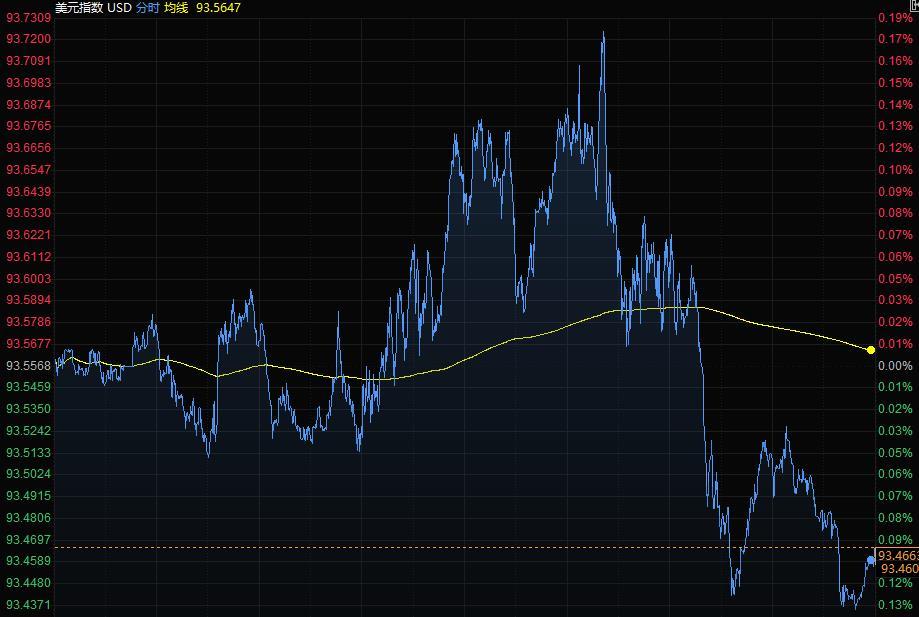 美元指数盘中一度触及93.73,为去年11月初以来最高,但尾盘下跌0.1%,报93.46;本周上涨近1%,为两个月来最大周线涨幅。