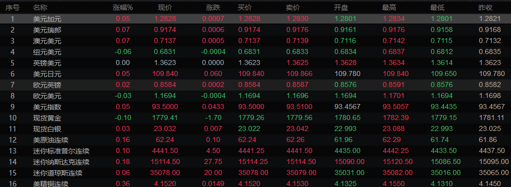 全球主要市场行情一览