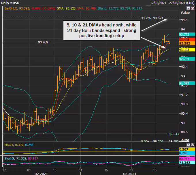 技术图来看,5、10和21日线和周线移动均线和21日布林带区间攀升。强有力的技术面看涨格局,目标是测试2020/21跌势的38.2%回档位94.47。