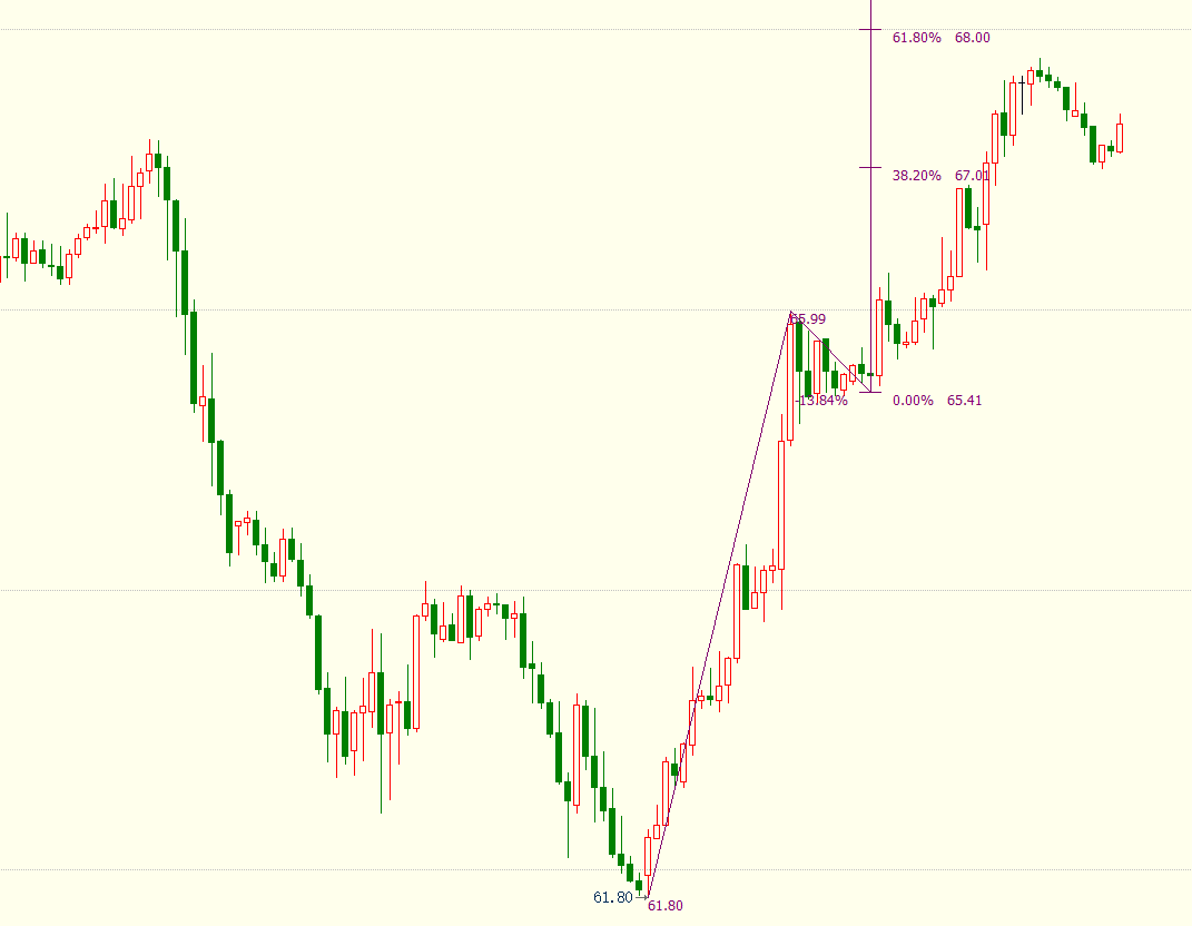 日线图上看,美油处于自61.74美元开启的上行((3))浪,上方近期目标看向14.6%目标位72.03美元。小时图上看,油价自65.41美元开启上行3浪走势,料升破61.8%目标位68美元,并进一步上看76.4%目标位68.61美元。