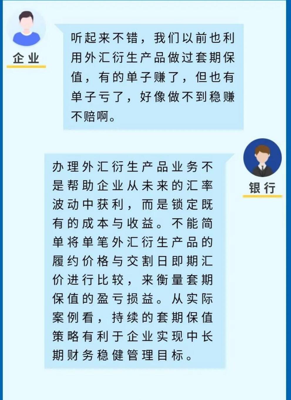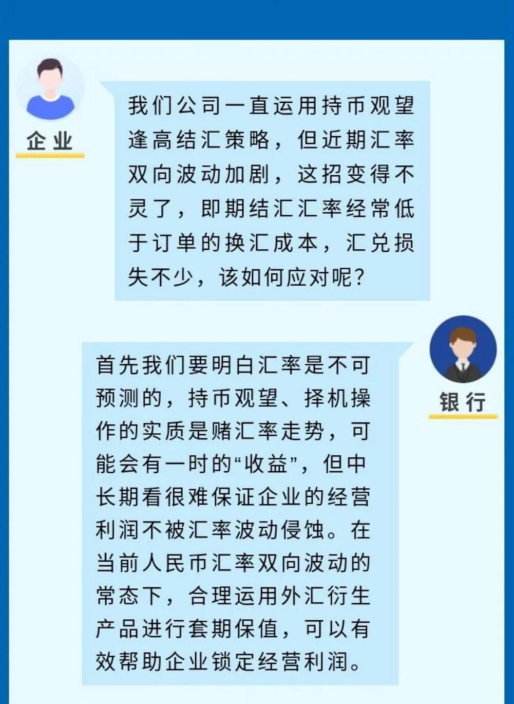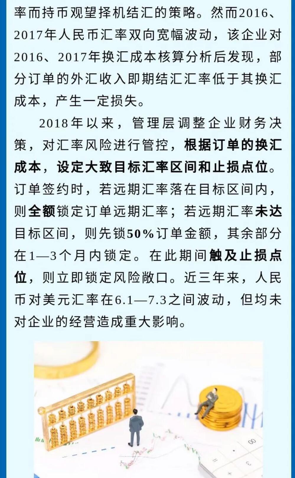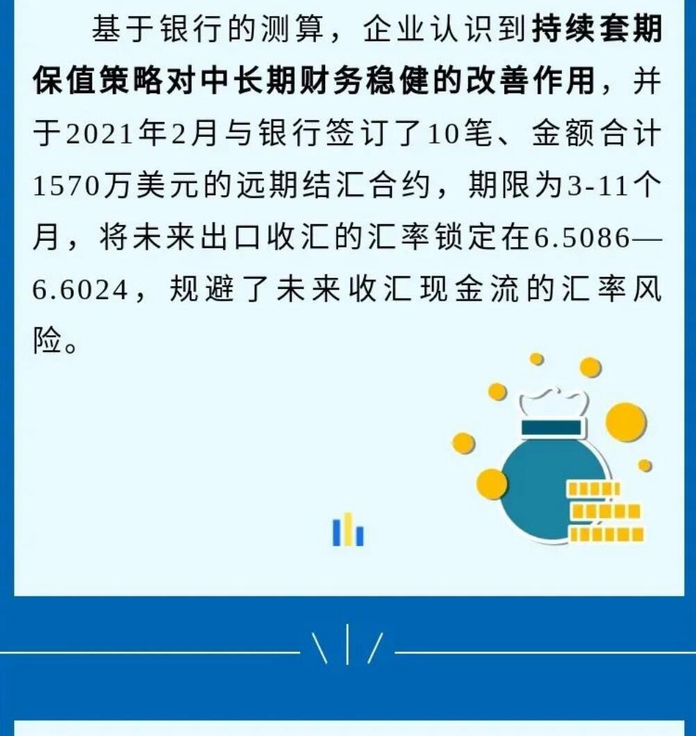 一张图系列--汇率避险经验之中小微企业篇 2021-08-26 15:29 据国家外汇管理局网站8月17日报道:由于缺乏汇率风险管理机制和专业管理人员,企业出口收汇在近年来人民币汇率双向波动中,经常承受较大的损失。基于银行的测算,企业认识到持续套期保值策略,对中长期财务稳健的改善作用……制作:国家外汇管理局福建省分局