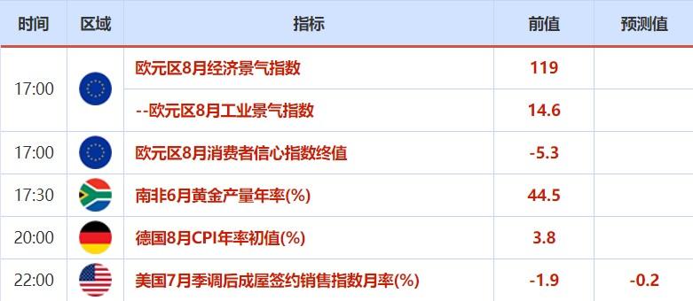 周一(8月30日)关键词:欧元区8月消费者信心指数,美国7月季调后成屋签约销售指数