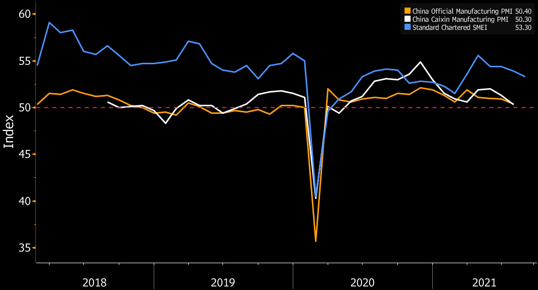 目前市场预计中国8月官方制造业PMI将继续保持在扩张区域,但将从7月的50.4小幅回落至50.1。同样,侧重出口导向型企业的财新制造业PMI可能会降至50.2,7月为50.3。据估计,中国8月官方非制造业PMI可能从7月的53.3回落至51.7。