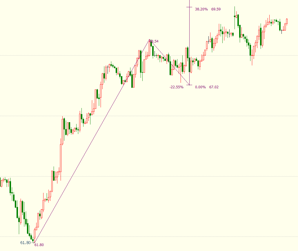 日线图上看,美油处于自61.74美元开启的上行((3))浪,上方近期目标看向14.6%目标位72.03美元。小时图上看,油价自67.02美元开启上行3浪走势,升破38.2%目标位69.59美元,后市上看61.8%目标位71.19美元。