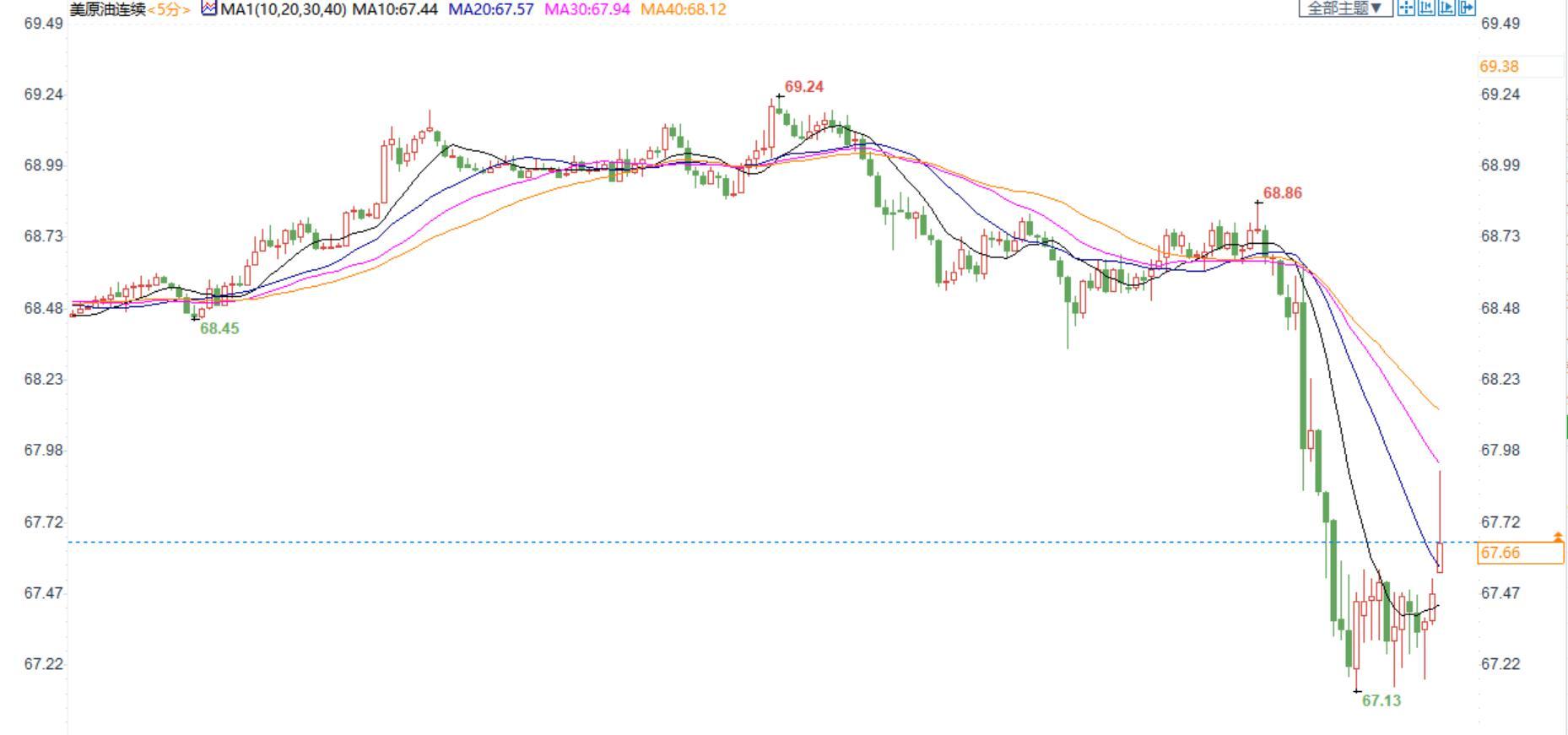 美国原油价格5分钟图显示