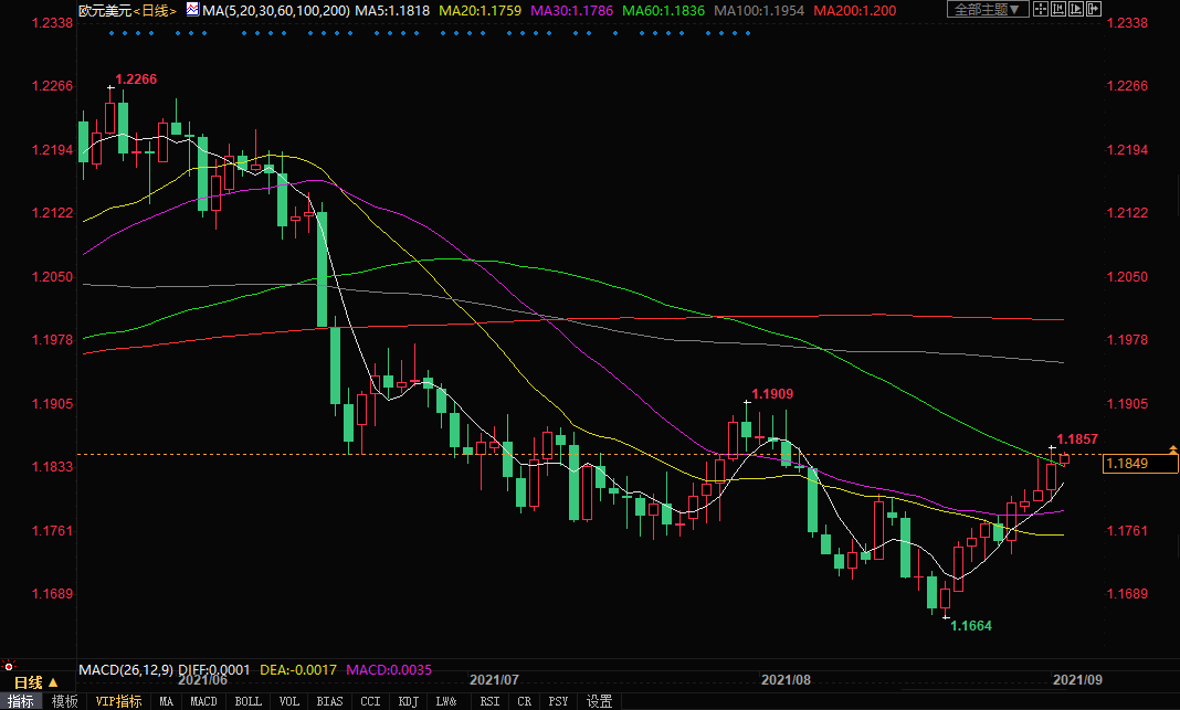 北京时间9月2日16:47,欧元兑美元报1.1848/50。