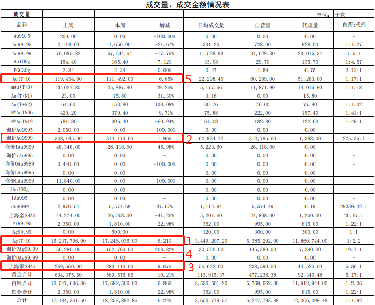 上海黄金交易所2021年第33期行情周报:白银交易量小涨