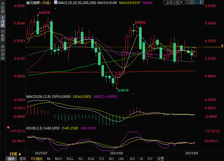 北京时间21:00,美元兑瑞郎报0.9165。