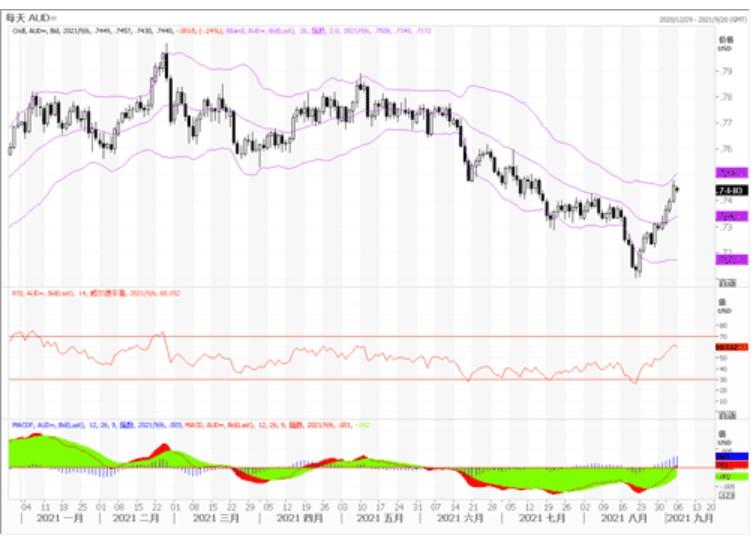 澳元兑美元在非农数据前后一直攀升,盘中最高升至七周高位,约在0.7474。围绕美元的普遍看跌情绪,帮助澳元/美元从0.7100关口或年内底部强劲反弹。除此之外,风险环境被认为是另一个因素,为高风险的澳元提供了额外的提振。从技术面来看,隔夜自6月以来首次突破50日移动均线,成为看涨交易者的关键触发因素。随后在0.7400和0.7420-25区域上方的强势可能已经为进一步的上行创造了条件。日线图上的技术指标刚刚开始进入积极区域,这一事实加强了建设性前景。尽管如此,相对强弱指数(14)在小时的图表上显示出极度超买的情况,这使得激进的看涨交易者需要谨慎一些。现在上方的0.7500是关键心理关口,若破位澳元克继续前行。但短期可能会引发一些多头平仓交易。修正性回调的下方支撑位置要留意0.7390、0.7360、0.7300等的支撑力度。