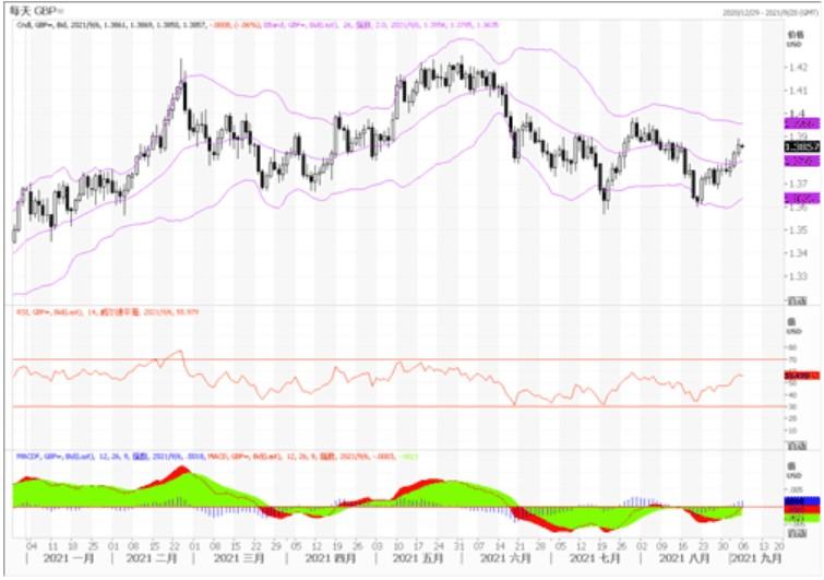 美国非农数据不良,略促进英镑的抬升,但幅度仍然有限,上周五最高也仅仅触及1.3893,但尾市则缓缓回落。尽管市场预期美联储无法尽管进入缩表的计划,但是最近英国新冠病例的激增,以及英国服务业PMI的小幅向下修正,使投资者对英镑持谨慎态度,不敢过于大举押注英镑。目前上方1.39-1.40区域仍构成较重的阻力,从日线图上看,汇价处于各短期均线上方,技术标开始向正向区域散发,英镑兑美元存在潜在的看涨倾向。但需防范冲高无果后的回落风险,下方的支撑分别处在1.38、1.3760。上方只有突破1.40大关,方可看到明显的走涨趋势。