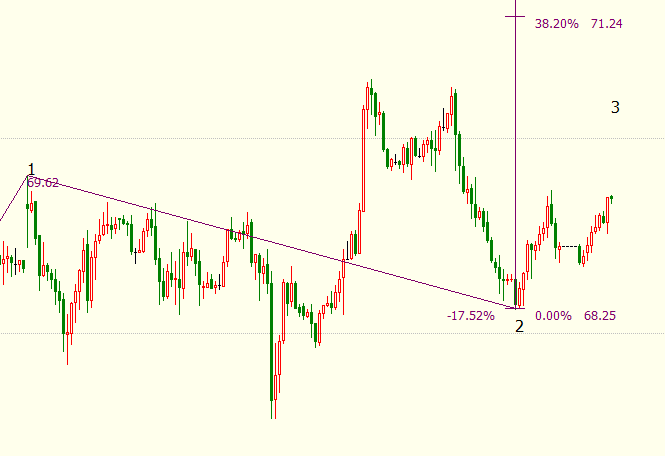 日线图上看,美油处于自61.74美元开启的上行((3))浪,上方近期目标看向14.6%目标位72.03美元。小时图上看,油价可能自68.25美元开启上行3浪走势,后市料升向38.2%目标位71.24美元。