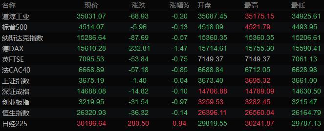 美股收盘情况:标普500指数下跌0.1%,报4514.07点;道琼斯工业平均指数下跌0.2%,报35031.07点;纳斯达克综合指数下跌0.6%,报15286.64点;纳斯达克100指数下跌0.4%,报15620.85点;罗素2000指数下跌1.1%,报2249.726点。