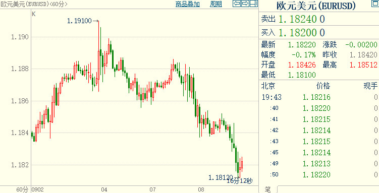 北京时间19:33,现货黄金上涨0.26%至1798.97美元/盎司;COMEX期金主力合约上涨0.14%至1801.0美元/盎司;美元指数上涨0.14%至92.673;欧元兑美元下跌0.20%至1.1818。美指创一周新高至92.732,欧元兑美元跌至一周新低1.1811。