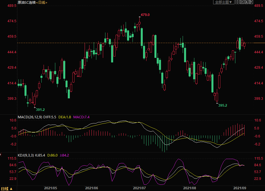 周三(9月8日)上海原油价格微跌,主力合约2110终盘收于453.8元/桶,跌0.5元/桶,跌幅0.11%,主要受强势美元以及对美国和亚洲新冠病例增加导致需求疲软的担忧拖累,但美国墨西哥湾生产中断持续,令跌幅受限。