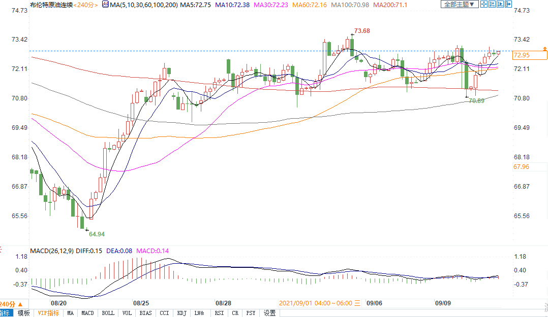 周五(9月10日)布油期货上涨1.47美元,涨幅为2.3%,结算价报72.92美元/桶;美油上涨1.158美元,涨幅为2.3%,报收69.72美元/桶。两大合约本周均录得小涨。因为在飓风艾达肆虐之后越来越多炼油厂恢复运营的情况下,美国墨西哥湾的一些油田依然维持停产状态,美国供应料将吃紧,对原油市场起到了提振作用。