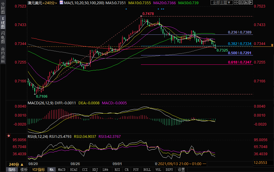 澳元兑美元跌至两周低点,0.7334一线支撑成关键