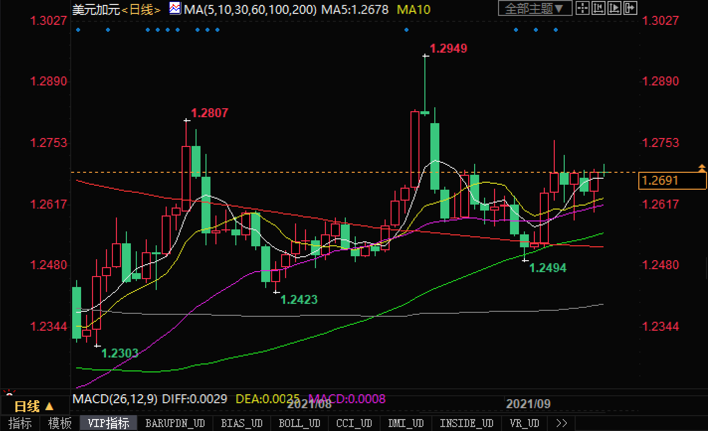 北京时间9月15日15:45,美元兑加元报1.2691/93