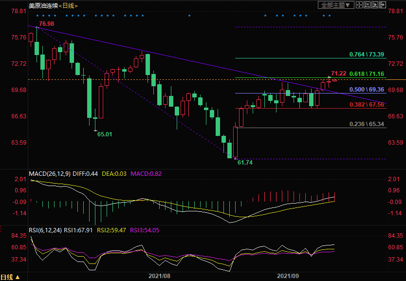 技术面来看,金价上方面临一重要阻力71.16,这是61.8%回撤位所在,如果强势突破这一水平,未来仍有上涨的机会。