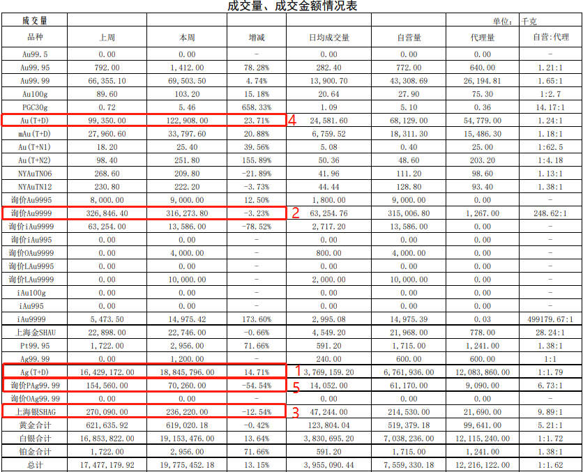 黄金白银交割情况