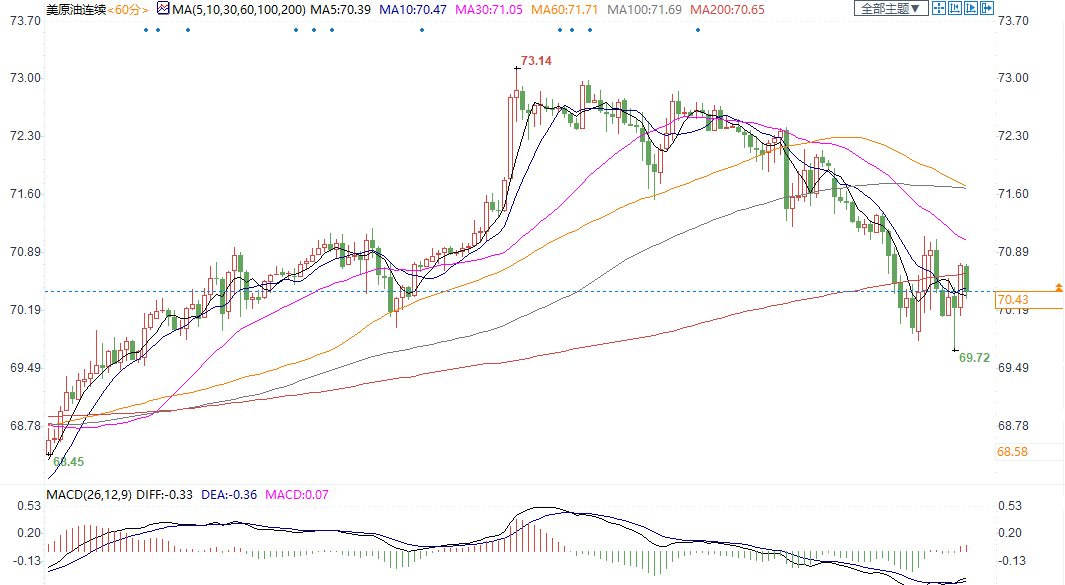 受累于避险情绪升温,美油跌逾2%一度失守70美元关口