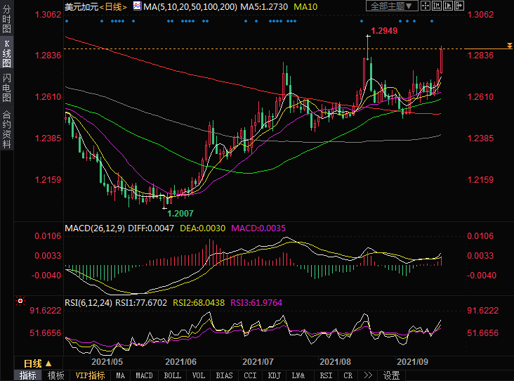美元兑加元升创一个月新高,有望突破1.29关口