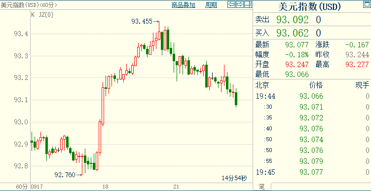 上一交易日(9月20日),美元指数在升至8月23日以来新高93.455后回吐全部涨幅;金价自日内录得的8月12日以来低点1742.38美元/盎司反弹。投资者在美联储公布新政前选择保持谨慎。
