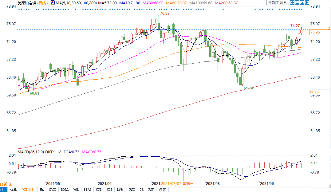 生产受扰致供应紧张,美油突破74关口创逾二个月新高