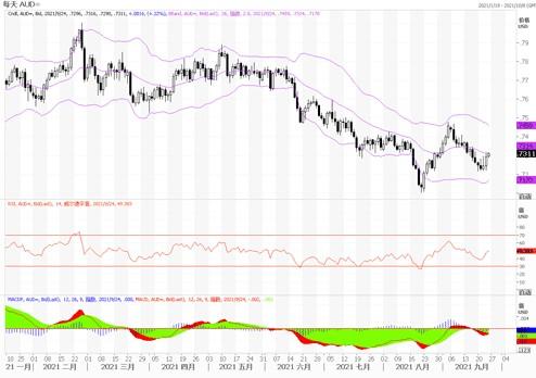昨日英国央行货币政策委员会保持利率不变,但其量化宽松计划定于12月结束。货币政策委员会指出,自8月以来,收紧货币政策的可能性有所增加,不能排除在12月结束量化宽松之前加息的可能性。有预计货币政策委员会将在2022年8月和11月加息。这足以暂时帮助英镑,不过程度仍难以捉摸。自美联储昨日增强其鹰派立场以来,英镑一直在挣扎,对政策分歧的质疑给近期前景蒙上了阴影。英镑在几个月内第三次成功从关键支撑位1.36反弹。如果MACD指标能够显示出下行势头放缓的迹象,这将是一个相当可观的进展,目前1.3770-1.3800将是关键阻力位。如果能突破有望升势延展,否则英镑近期的颓势仍难以改善。
