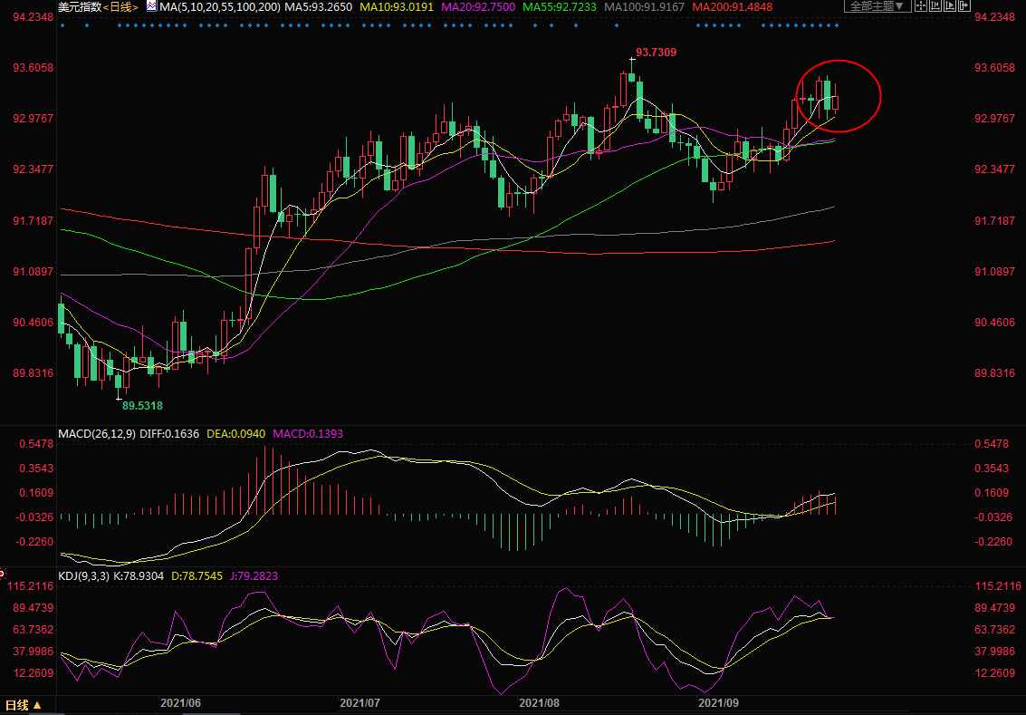 在美联储利率决议后美元指数震荡走高,最高触及93.52,为8月23日以来新高。不过,周四(9月23日)美元指数大幅走弱,回吐全部涨幅,一方面,是因为“靴子落地”,另一方面,则是市场对亚洲房地产市场的担忧情绪降温,削弱了美元的避险需求。