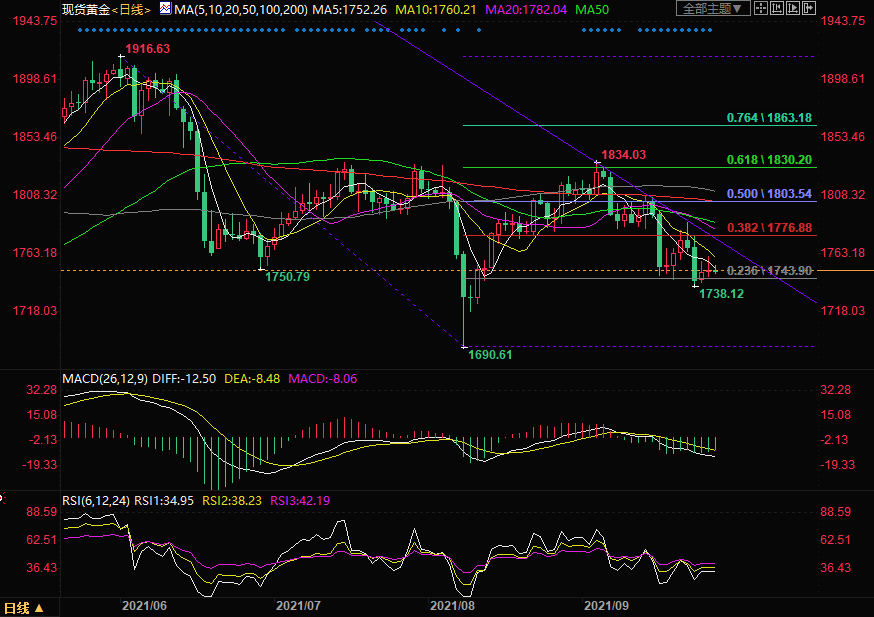 下方支撑关注9月23日低位1738.12,进一步关注8月11日低位1724.17以及8月10日低位1717.83。