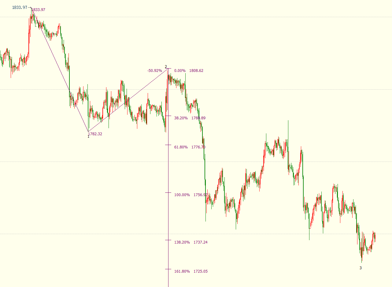 小时图上看,金价料自1809美元开启下行3浪,料跌破161.8%目标位1725美元,下方支撑看向176.4%目标位1718美元和185.4%目标位1713美元。3浪是(3)浪的子浪。