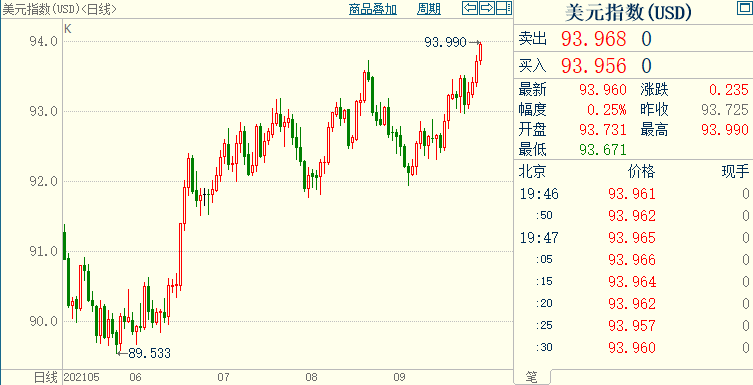 美债收益率隔夜创下6月17日以来新高至1.565%,美联储在上周的货币政策会议上立场转趋鹰派,强化了市场对美联储可能在11月宣布开始缩减资产购买并可能随后升息的看法。