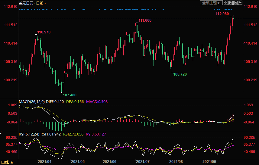 周四(9月30日)美元兑日元高位震荡,一度突破112关口。日本央行行长黑田东彦日内强调维持大规模货币刺激的必要性,与此同时,新当选的自民党总裁岸田文雄也支撑大规模的刺激措施,而在加拿大帝国商业银行的经济学家看来,这已经为美元兑日元年底前试探2020年高点112.23打开大门。