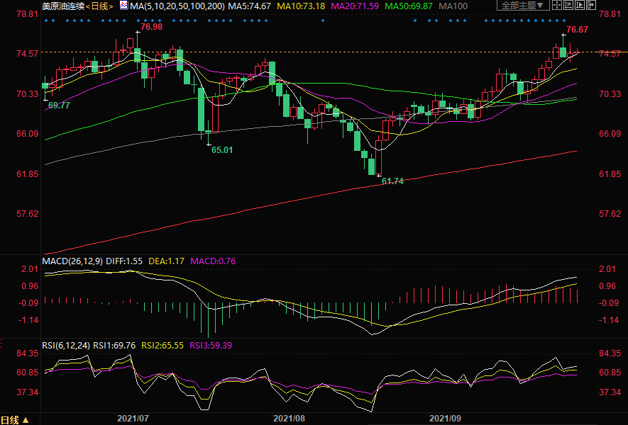 上方阻力位关注9月28日高位76.67,进一步关注78关口及80心理关口。