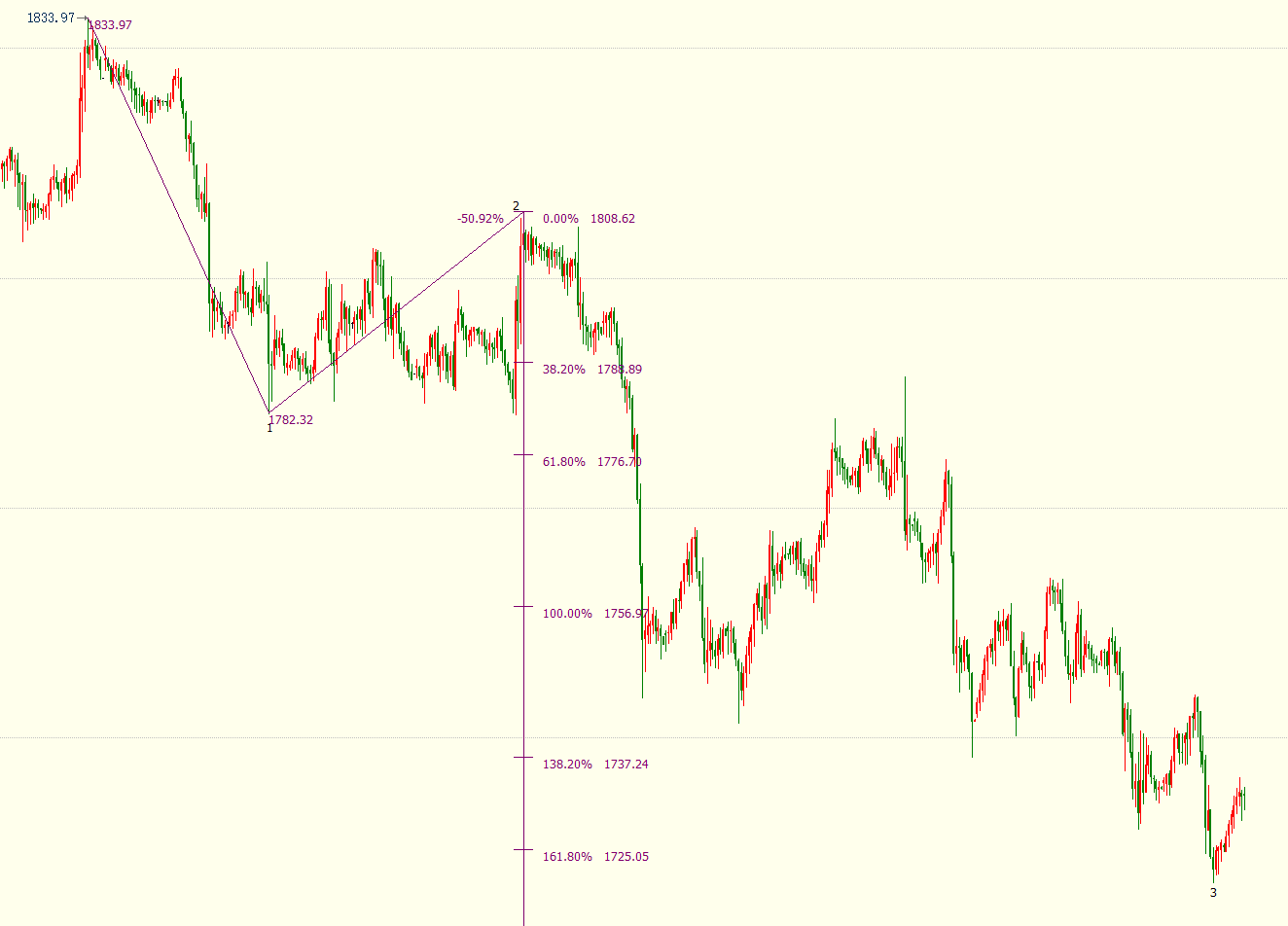 小时图上看,金价料自1809美元开启下行3浪,跌破161.8%目标位1725美元,下方支撑看向176.4%目标位1718美元和185.4%目标位1713美元。3浪是(3)浪的子浪。