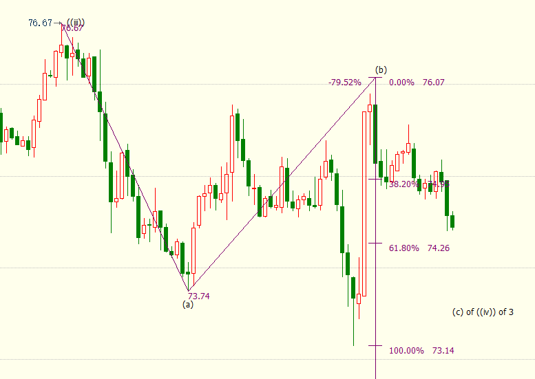 日线图上看,美油处于自61.74美元开启的上行((3))浪,上方近期阻力看向23.6%目标位78.37美元。小时图上看,油价处于自76.07美元开启的下行(c)浪,后市料跌破61.8%目标位74.26美元,并下探76.4%目标位73.83美元。(c)浪是自76.67美元开启的下行((iv))浪的子浪,((iv))浪是自67.58美元开启的上行3浪的子浪。