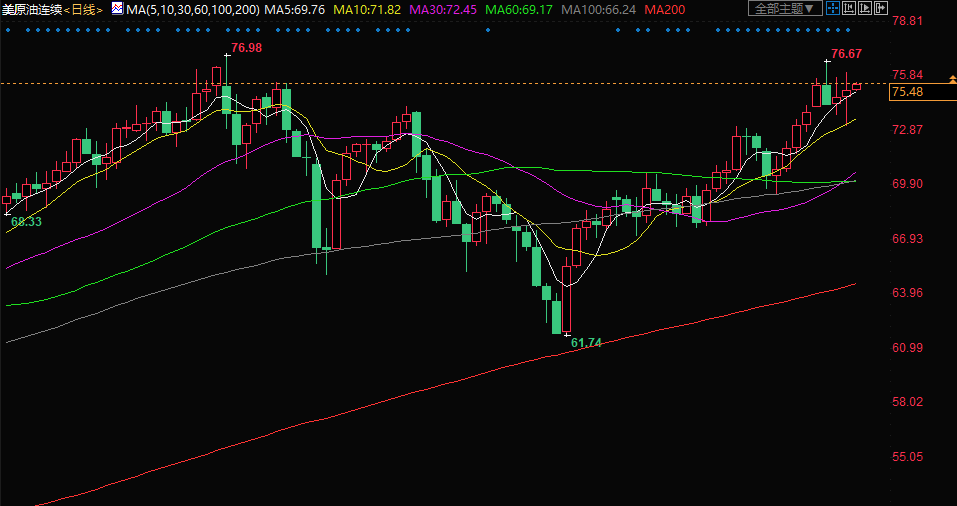 北京时间8:14,美原油现报75.45美元/桶。
