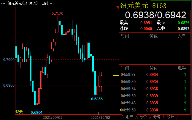 纽元兑美元收跌0.96%,盘中创8月23日以来新低至0.6856。市场完全消化了新西兰联储本月将加息25个基点的预期。此前8月爆出一些新冠病例,引发又一次封锁,令原本预计当时会加息的交易员措手不及。