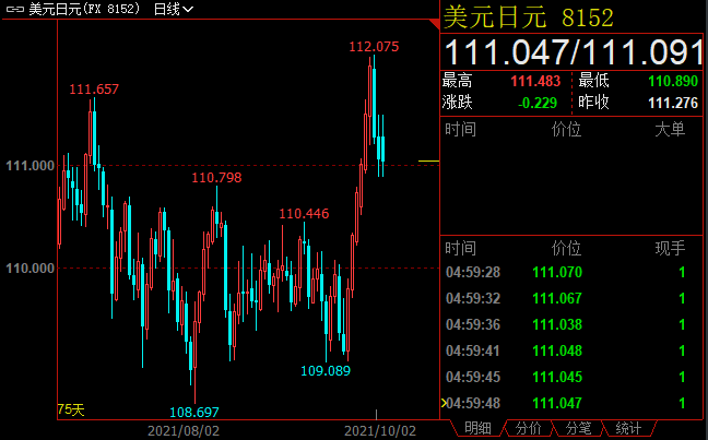 美元兑日元创2020年2月21日以来新高至112.075,但终盘回吐逾半数升势,收涨0.28%于111.047。日本已在9月底解除所有地区的新冠疫情紧急状态。