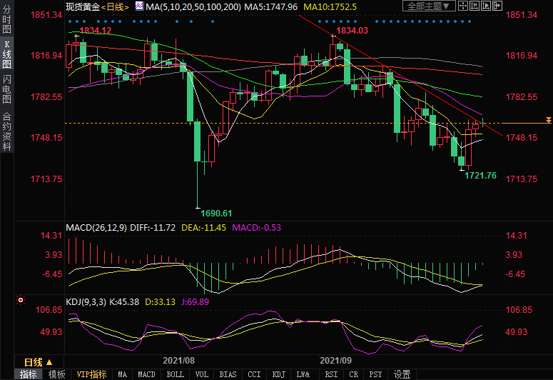 北京时间13:45,现货黄金报1761.33美元/盎司。