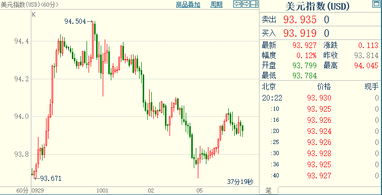 北京时间20:21,现货黄金下跌0.56%至1759.77美元/盎司;COMEX期金主力合约下跌0.42%至1760.1美元/盎司;美元指数上浮0.12%至93.924。