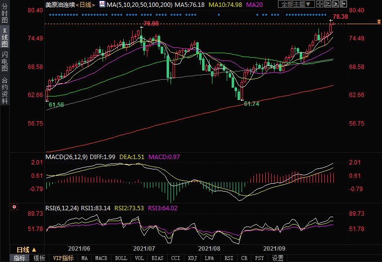 下方支撑位关注5日均线76.17,进一步关注10日均线74.98以及9月15日高位73.14。