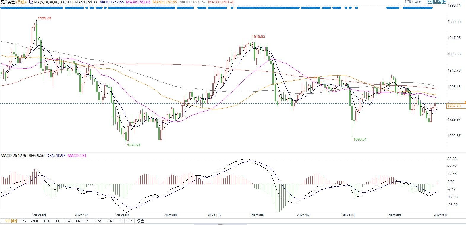 北京时间10月5日8:34,现货黄金报1766.59美元/盎司。