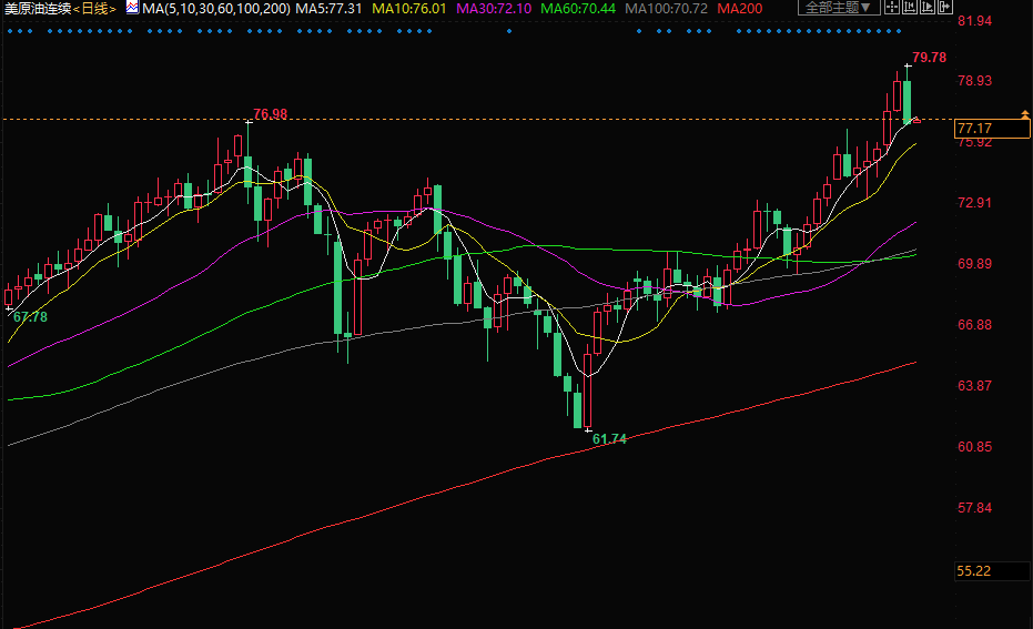 周四(10月7日)亚洲时段,美原油小幅下跌,现报77.22美元/桶;油价周三下跌近2%,美国库存增加,促使买家在近期大涨后稍作喘息,俄罗斯暗示准备好缓解全球能源危机,油价创出两周最大跌幅,远离刚刚创下的多年新高。