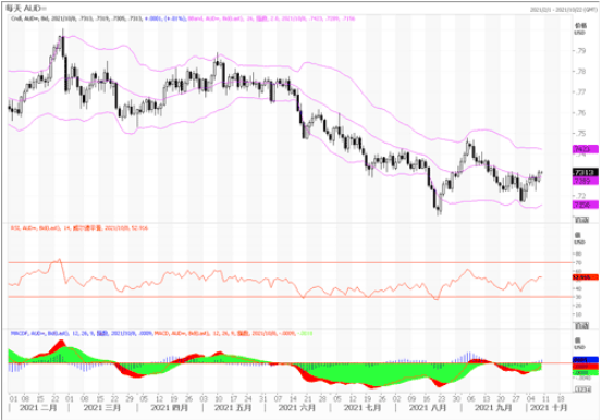 澳元受益于市场风险偏好,澳元/美元飙升至 0.7323,录得三周以来的高水平。周五亚市开盘前澳元/美元维持上涨,交投于 0.7310 附近。尽管今日早间公布的澳大利亚数据不温不火,但全球股指积极,提振澳元/美元。9 月 AIG 服务业表现指数录得 45.7,略好于前值 45.6,但仍处于收缩区域。周五,澳大利亚储备银行将发布金融稳定审查报告,而美国将发布月度就业数据。美联储主席杰罗姆鲍威尔曾表示,若就业数据良好,可能足以说服其缩减量宽,因此非农就业数据将影响美联储缩减量宽的前景。同时也将对该货币对产生较大影响。澳元/美元已触及日图跌势的 50% 回档位,并可能短期延续涨势。日图显示,澳元/美元成功突破20均线。同样的技术指标持稳朝上行,处在正区。若澳元/美元突破 0.7330 区域,则支持汇价将进一步上涨,目标瞄向0.74-0.7480。短线 4 小时图显示,尽管澳元/美元动能有限,但汇价风险偏上行,下方0.72处支撑较为强硬。