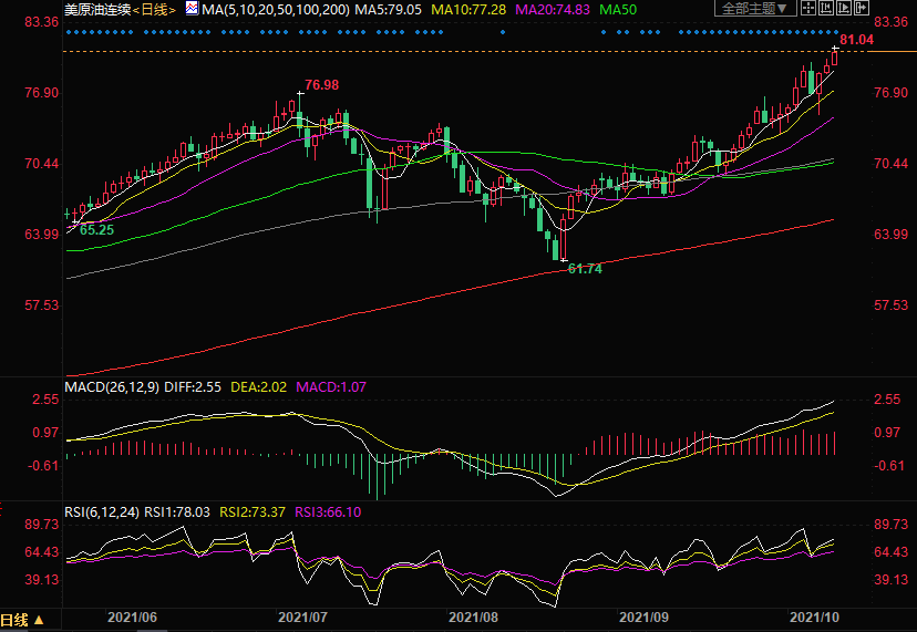 周一(10月11日)美原油升创近七年新高,短线油价仍然相当强势,建议投资者继续逢低做多。
