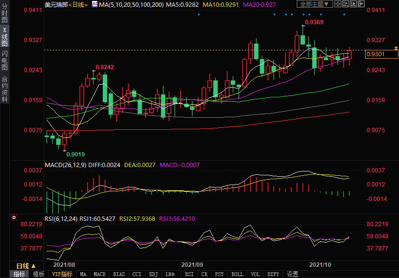 美元兑瑞郎探底回升站上0.93关口,未来仍偏上行