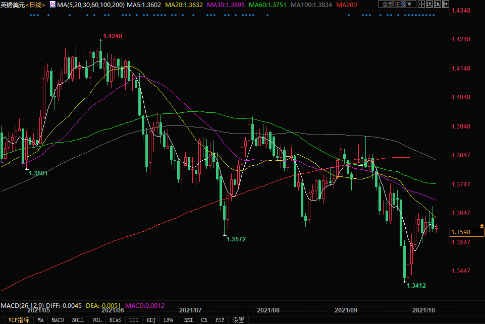 周二(10月12日)欧市盘中,英镑兑美元窄幅震荡,多头始终无法将汇价维持在1.36关口上方。